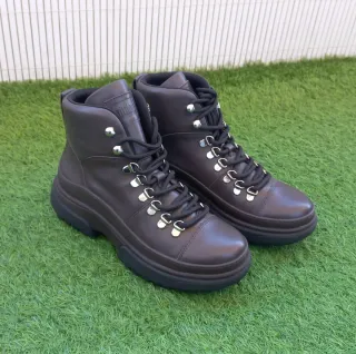 Botines de piel con un diseño moderno y atrevido. - Material: Piel - Cierre: Cordones - Tacón grueso - Plataforma delantera