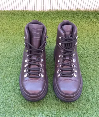 Botines de piel de la marca Uterqüe en color marrón. - Talla 41. - Poco uso, como se puede ver en la suela. Tiene algunas marcas de uso, que se ven en las fotos. - Diseño moderno con suela track.
