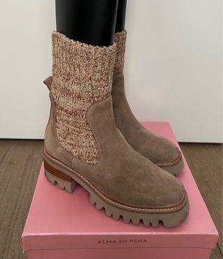 Botas de piel con detalle de punto. - Material exterior: Piel - Material interior: Textil - Suela de goma - Diseño chelsea - Caña tejida
