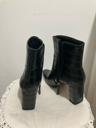 Botines de tacón de Zara. - Diseño elegante en piel. - Cremallera lateral.