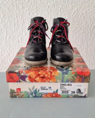 Botines de piel de la marca Gloria Ortiz. - Talla 38. - Color negro. - Modelo nuevo sin etiquetas.