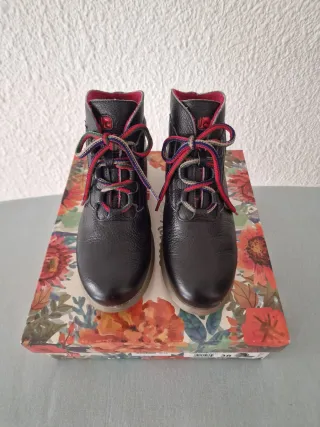 Botines de piel con cordones.Hechos en España - Material exterior de ante. - Cierre de cordones. - Suela de goma antideslizante Usados muy poco,muy cómodos,vendo porque me vienen justos 15 euros