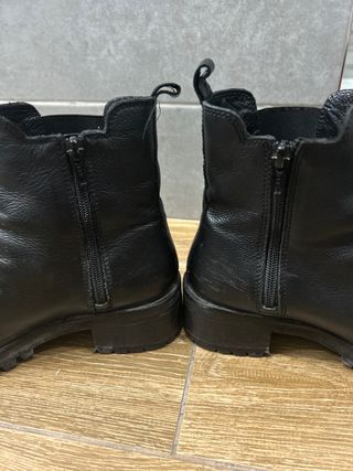 Botines de piel marca Ghost. Son la talla 39, aunque yo uso la 38 y me quedan bien. 7 cm de tacón. Muy cómodos. Tienen la puntera algo rozada, se ve en las fotos. Las tapas están recién cambiadas