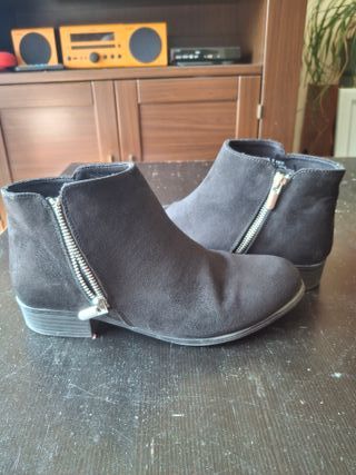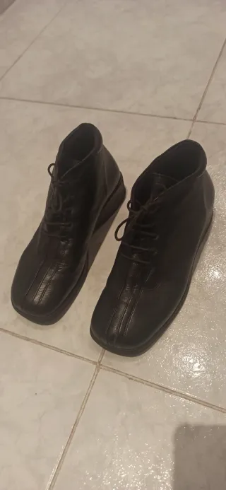 Botines de tacón ancho con cierre de cordones. - Material exterior de ante. - Tacón cuadrado. - Diseño tipo botín. Hago envío muy rápido. Mira mis otros artículos, hay más calzado de mujer (n° 38, 39, 40) niño y hombre de varias tallas, ropa de marca nueva/como nueva, bolsos de marca y piel, bisutería, juguetes nuevos o seminuevos, decoración y muchas otras cosas a precio bajo y hago descuento si compras más de un artículo.