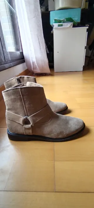 Preciosos botines de ante de Zara para niña, talla 35. Usados solo dos veces. Ideales para cualquier temporada. Son de color beige. Todo piel, muy cómodos. - Cremallera lateral para facilitar el calzado. - Suela de goma resistente. - Perfecto estado.
