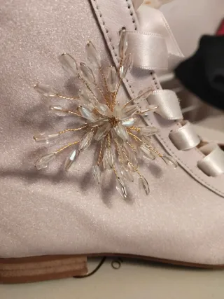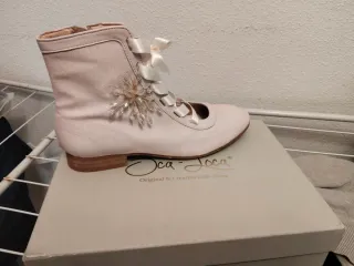 Botín niña,también puede ser para adulto. Tiene como brillitos apenas están utilizadas..tiene el precio de lo que costo pegado todavía. En parte de atrás como se puede ver en la última foto como desconectada pero por la arruga pero estas impecables se pude ver en la suela.