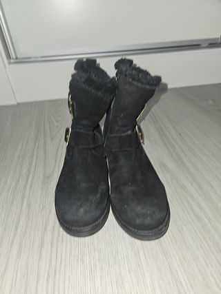 Botas de piel ante negras. Van forradas por dentro y son calentitas. La suela esta nueva y el ante también, no está estropeado, son de una niña y se quedaron pequeñas enseguida.