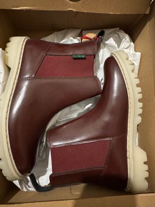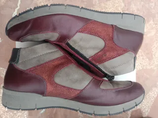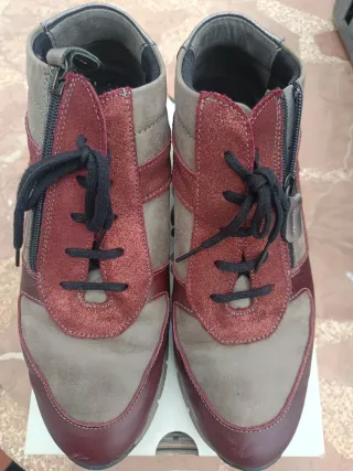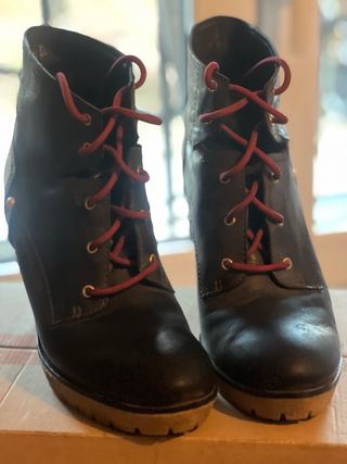 Botines de piel con un diseño moderno y combinaciones de color. Vendo porque son un poco justos para mi - Material exterior de piel. - Cierre lateral con cremallera. - Detalle de cordones en la parte delantera. - Suela de goma.