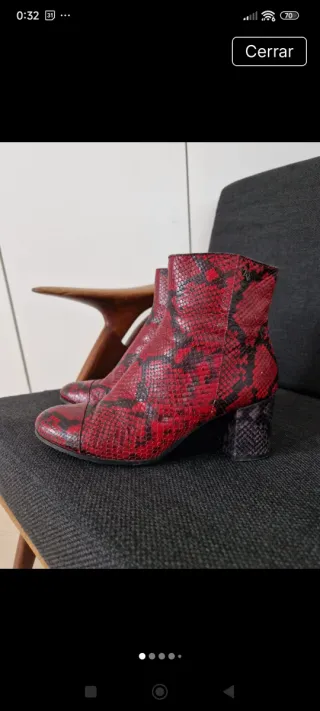 Preciosos botines en piel. Marca Martín natur muy cómodos, made in Spain. El rojo del costado no es tan intenso. Pagado más de 200€. Piel sin químicos. Tengo un problema en un pie y vendo mucho de mi calzado. Mira valoraciones. - Talla 37.