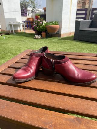 Vendo botines de piel de la marca Zara para mujer, usados en pocas ocasiones, buen estado, el color es un rojo Corinto muy bonito, talla 40