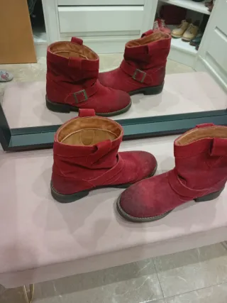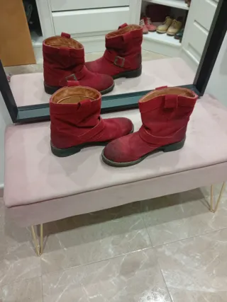 Botines de Piel Velcro Rojo Talla 37 Nuevos
