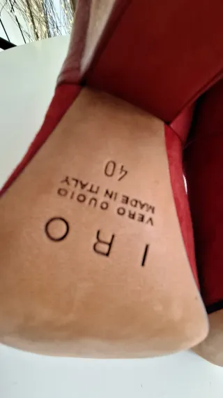 Botines IRO rojos – nuevos a estrenar, talla 40 Botines de la marca IRO completamente nuevos (sin etiqueta). Diseño precioso en dos materiales de piel: ante y piel lisa, con un acabado espectacular. En las fotos se aprecia el detalle metálico en la puntera, ideal para proteger la zona que más sufre con el uso diario. La piel es de calidad excepcional, muy suave y resistente. Precio original alrededor de 500 €. Oportunidad perfecta para llevarte un par de botines de lujo a un precio increíble. Cualquier duda, envía mensaje. Descuento por LOTE
