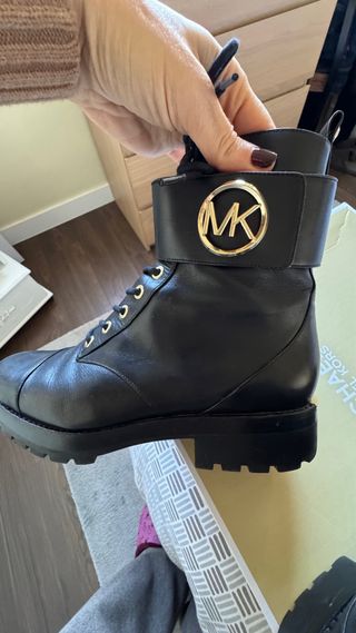 Combat Boots de caña media de la marca Michael Kors. Talla 40. Están en excelentes condiciones. - Piel negra. - Detalle de logo MK dorado en la caña. - Cierre con cordones y cremallera lateral. - Suela de goma. - Detalle de hebilla dorada. - Incluye caja