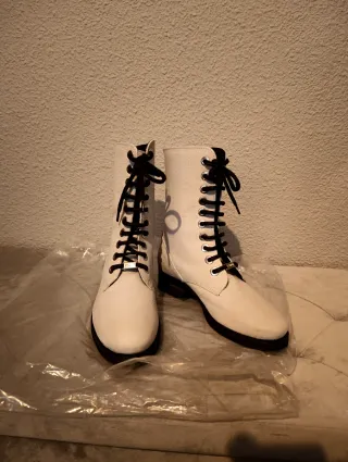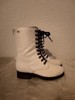 Botines de color blanco hielo, de piel 100%, cremallera trasera, interior forrado en piel. Estado excelente.