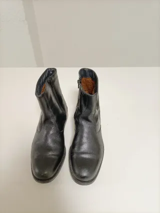 Botines negros usados, pero poco, que tienen un tirador roto, de ahí el bajo precio para ser de cuero. Los envío con el guardapolvo de Zara.