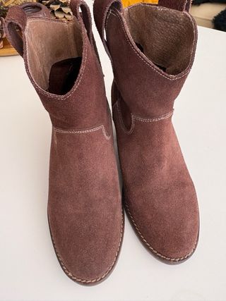 Botines planos exterior piel y ante, interior piel. Muy cómodos.