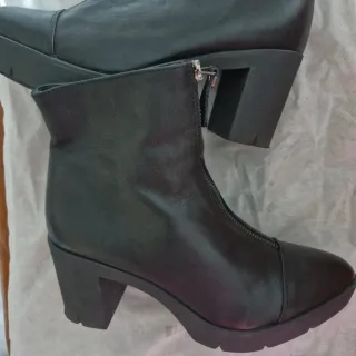 Botines negros de piel 100% bovino, tacón 9cm, cierre y forro interior. - Tacón grueso. - Cierre de cremallera lateral. - Un solo uso.