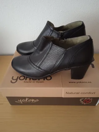 Botines de piel de la marca Yokono. - Material exterior de piel. - Cierre de cremallera lateral. - Tacón grueso.