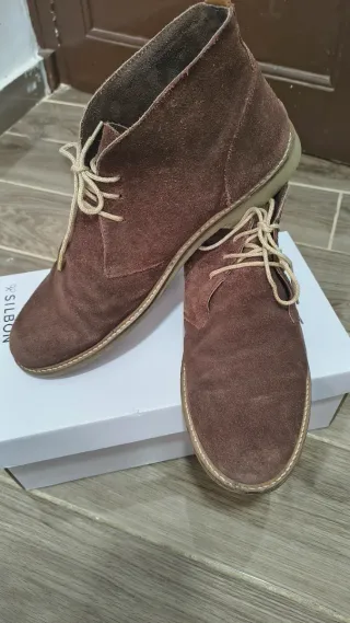 Botines de piel en color marrón, muy cómodos. A penas dos veces puesto - Cierre con cremallera lateral. - Tacón cuadrado. - Material exterior de ante.