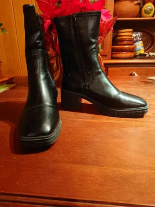 Botines de piel en color negro. -Nuevos sin estrenar. - Cierre con cremallera. - Tacón grueso. - Suela de goma.