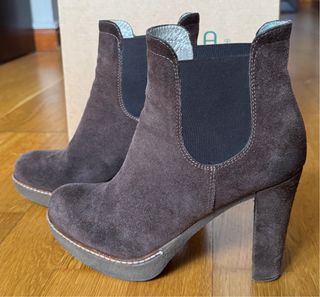 Botín de tacón de la firma ‘Unisa’. Diseño actual y elegante. En piel de ante marrón chocolate. Muy cómodos. Número: 38 Altura tacón: 10 centímetros