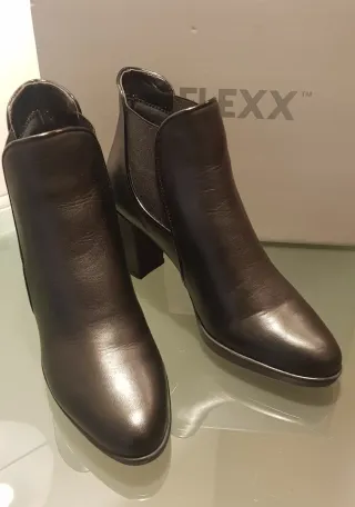 Botines de tacón de la marca Flexx en color negro. Un diseño elegante y versátil. - Material exterior de piel. - Detalle elástico lateral. - Tacón grueso para mayor comodidad. •Solo venta en pedido mínimo de 60€.