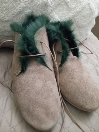 Botines de piel forrados de piel de pelo , número 39, muy cómodos, calentitos y originales.