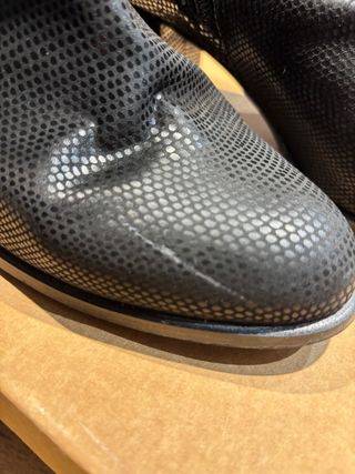 Botines de estilo cowboy en color negro. Tienen un diseño moderno y elegante. - Material: Ante sintético. - Tacón grueso. - Cierre de cremallera trasera Utilizado en 2 o 3 ocasiones. Prácticamente nuevos.