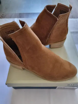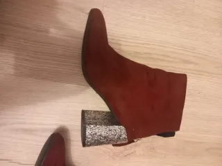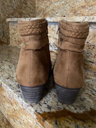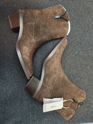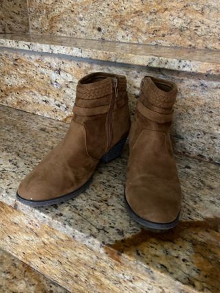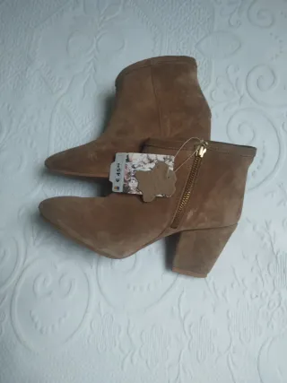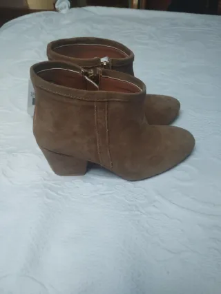 Botines de ante en color marrón. - Material: Piel ante. - Cierre de cremallera lateral. - Tacón cuadrado. Nuevos con etiqueta,ideal como regalo.