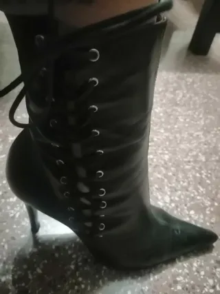 Botines de tacón con cordones. - Diseño de punta afilada. - Cierre de cordones en la parte delantera. - Tacón de aguja.