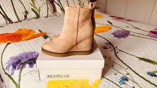 Botines de cuña de la marca BESTELLE, sin estrenar. En su embalaje original. - Color beige. - Diseño de botín. - Tacón de cuña. -Suela de goma