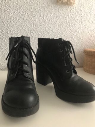 Botines de piel en color negro de Bimba y Lola. - Tacón grueso. - Suela track. - Cierre de cremallera lateral.