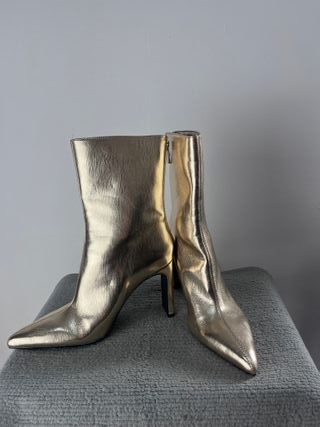 Botines con un diseño moderno y elegante. - Acabado metalizado. - Tacón con detalles brillantes.