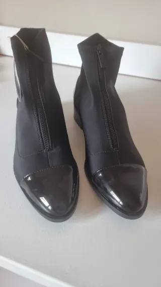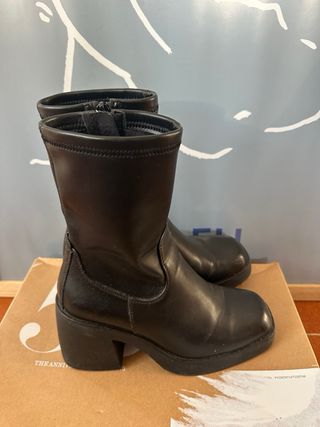 Botines de tacón ancho. - Diseño moderno y elegante. - Tacón cuadrado y robusto de 5,5 cm. - Punta cuadrada. - usado una sola vez.