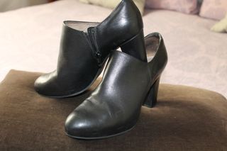 Botín de piel precioso, me lo puse una sola vez porque no estoy acostumbrada a llevar tacón y veo que no me los voy a poner más...en la primera foto está la versión en marrón, son negros los que vendo, y aparece el precio (59), (para que se vea que son de esta temporada) - Color marrón. - Marca Zara. - Cierre de cremallera lateral.