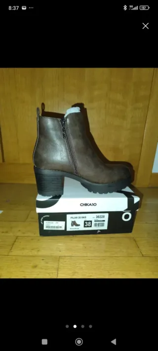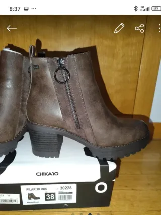 Botines nuevos de la marca Chika 10. - Modelo: Pilar 28 RKS. - Color: Marrón. - Talla: 38. Botín de piel vegana con tacón grueso y cremallera lateral: Este elegante botín de piel vegana cuenta con un tacón grueso y una cremallera lateral decorativa con tirador en forma de anillo. La textura del material y la suela acanalada ofrecen tanto estilo como funcionalidad. Ancho de caña: Normal Altura de caña: Baja Altura de tacón: 6 cm Puntera: Redonda
