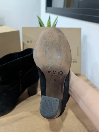 Botines de tacón de la marca Mimao. Talla 38 Tacón ancho 8 cms - Diseño elegante y moderno. - Material de piel de serraje - Cremallera lateral para facilitar su uso.