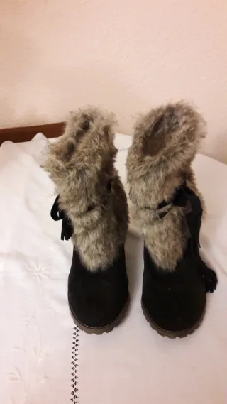 70 % de descuento en Botines de invierno con forro de pelo. - Diseño moderno y cálido. - Detalle de flecos y lazo. - Suela resistente. -Con tacón ancho y muy cómodos. -Precio tienda: 95€, adquiridas en Londres, Reino Unido