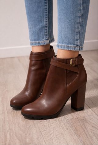 Botín tacón ancho piel marrón Zara.