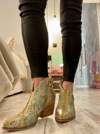 Botines cowboy dorados y verdes