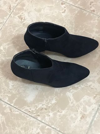 Botines nuevos de ante. Tacón alto 9cm y ancho 4cm. Plataforma de 2cm. Nuevos a estrenar. Ideales y muy estilosos. Precio original 89.99€. he perdido el ticket y no puedo devolverlos. Pregunta sin compromiso.