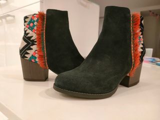 Botín de piel negro de Desigual, con diseño apache en la parte trastera. tacón ancho medio. No han sido utilizados, nuevos a estrenar.