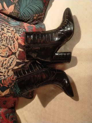 Botines de tacón para mujer. -De Zara modelo Trafaluc - Diseño de botín. - Tacón grueso de 10 cm de alto por 3'5 cm de ancho.