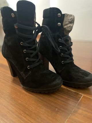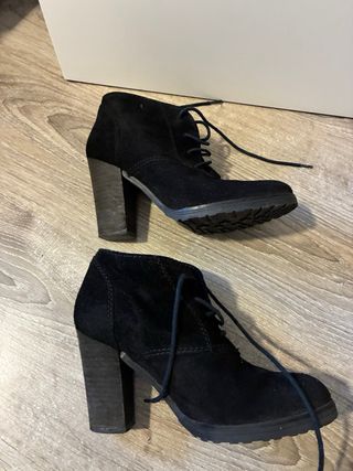 Botines de ante negros con cordones. 1 día puestos - Tacón - Diseño tipo botín. - Cierre con cordones. Recoger en el barrio del Pilar