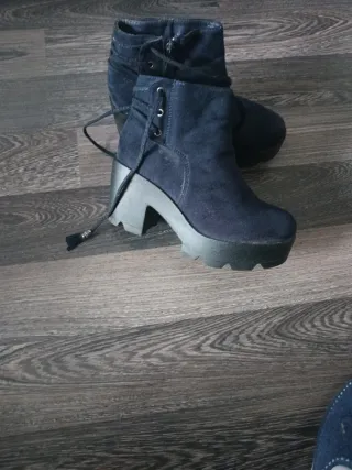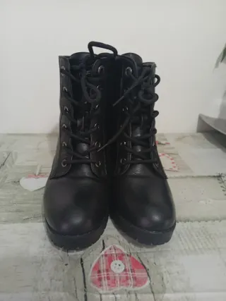 - Botines Refresh de tacón con plataforma, en perfecto estado, casi nuevos. - Usados media hora. - Cierre con cordones y cremallera lateral. - Detalle de hebilla. - Suela gruesa. - Los vendo porque no puedo llevar tacones ☹️