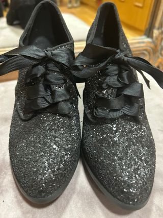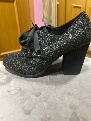 zapato negro de tacon abotinado de fiesta con cordones sin estrenar