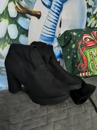 Tacones de ante tipo botín bajo, de color gris oscuro. El materia que tienen es de alta calidad y no hacen nada de daño. Talla 37. Apenas tienen uso Se venden porque ya no me caben Se aceptan ofertas