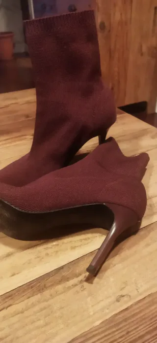 Botines de estilo calcetín con tacón alto. Muy poco uso. Dos puestas. - Diseño ajustado. - Tacón fino y elegante. - Material textil.