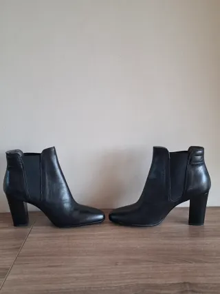 Botines elegantes de tacón bajo y punta fina. - Material exterior de piel. - Diseño tipo Chelsea con elásticos laterales. - Tacón de aguja fino. Solo se han puesto en una ocasión comprados en septiembre del2023 adjunto tiquet de compra. Se entregan con su funda guardapolvo y las protecciones para mantener su forma original. En perfecto estado. Se entregan en Poblenou, NO envíos. Solo en persona