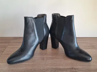 Botines elegantes de tacón para mujer usadas 2 veces. - Diseño tipo Chelsea con elásticos laterales. - Tacón fino y punta afilada.